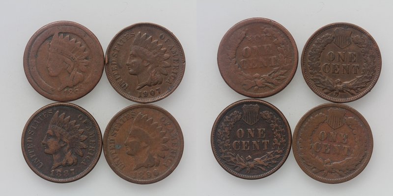 USA Indian Head LOT One Cent 1863/87/96-1907 4 Stück