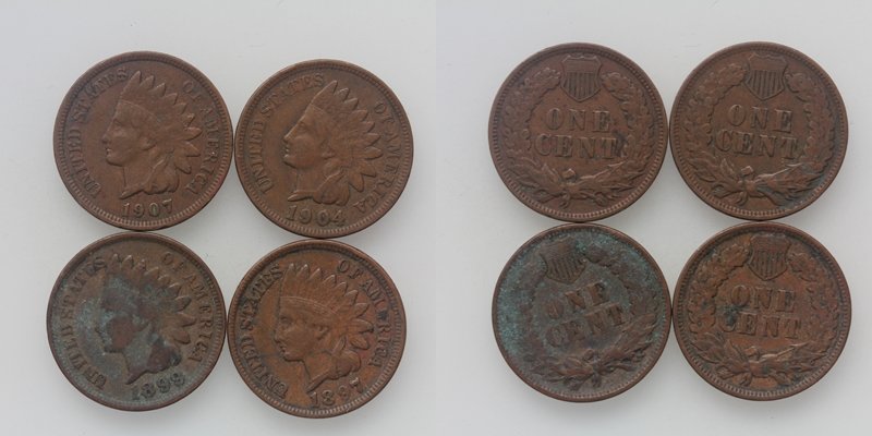 USA Indian Head LOT One Cent 1899/97-1904/07 4 Stück