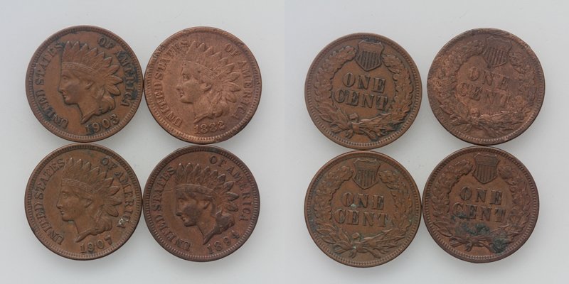 USA Indian Head LOT One Cent 1903/07-1882/94 4 Stück