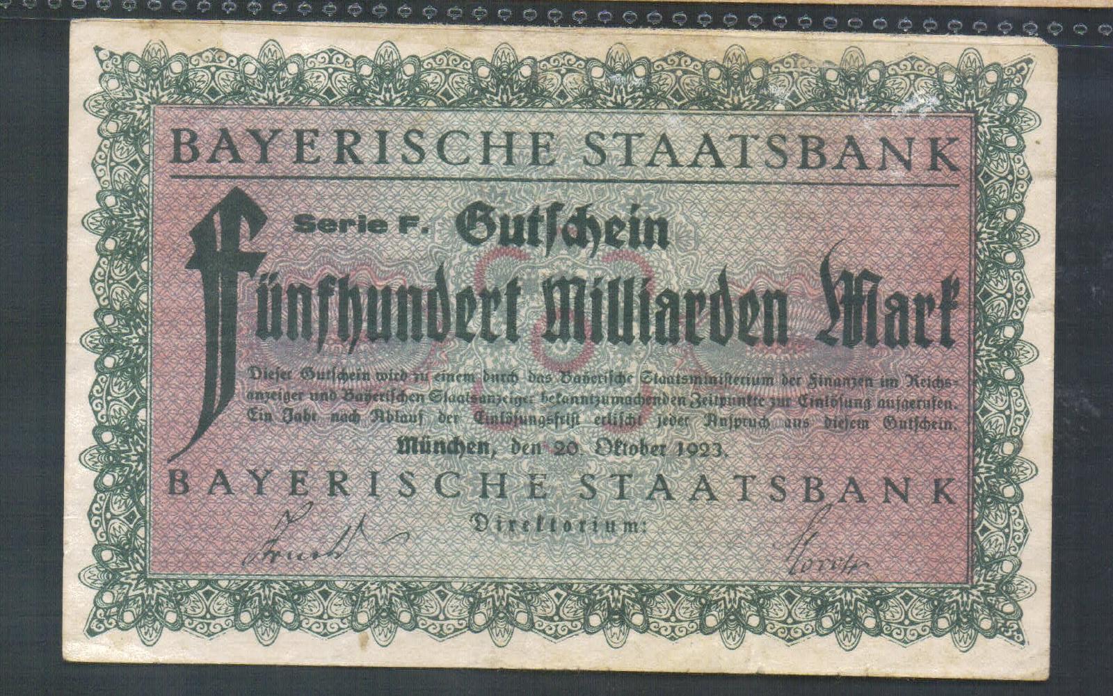 Bayerische Staatsbank 500 Milliarden Mark 1923
