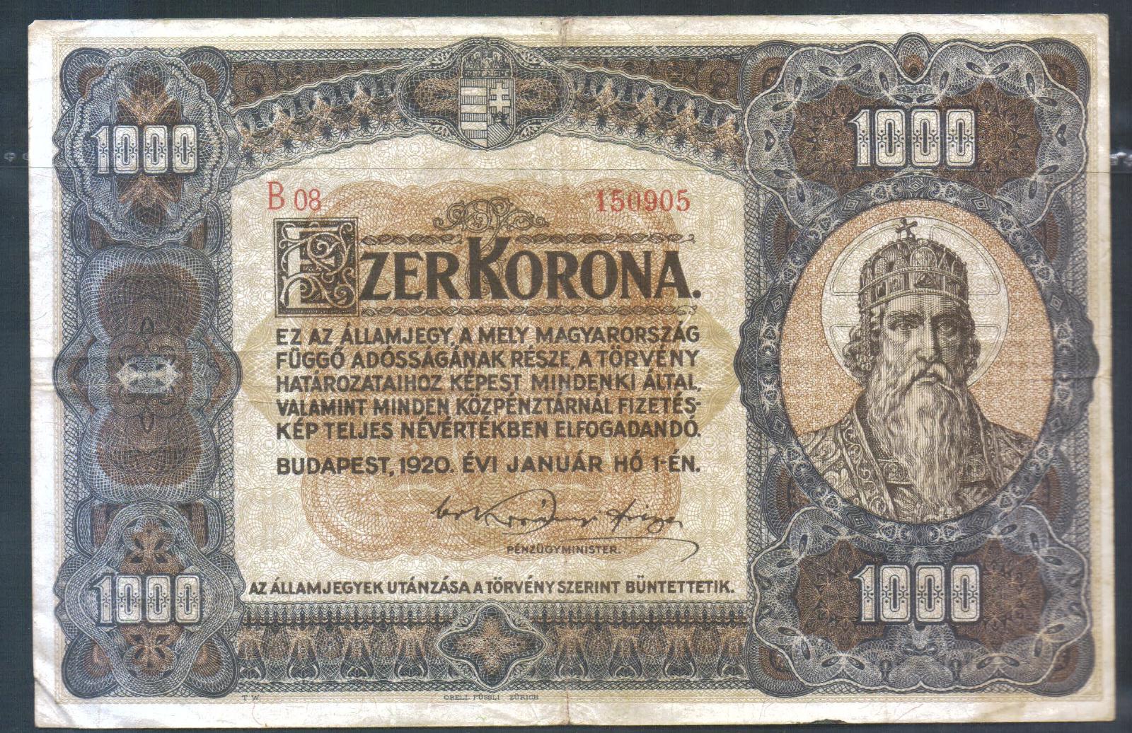 Ungarn 1000 Korona/Kronen 1920 Budapest