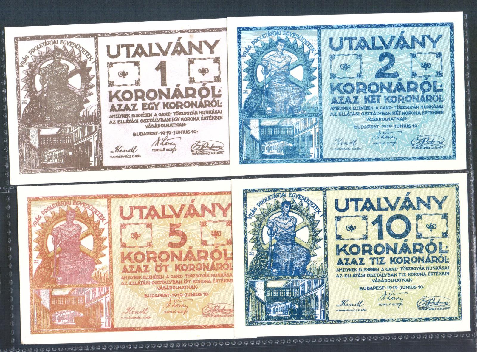 Ungarn-Budapest Ganz-Törzsgyár 1,2,5,10 Korona utalvány 1919