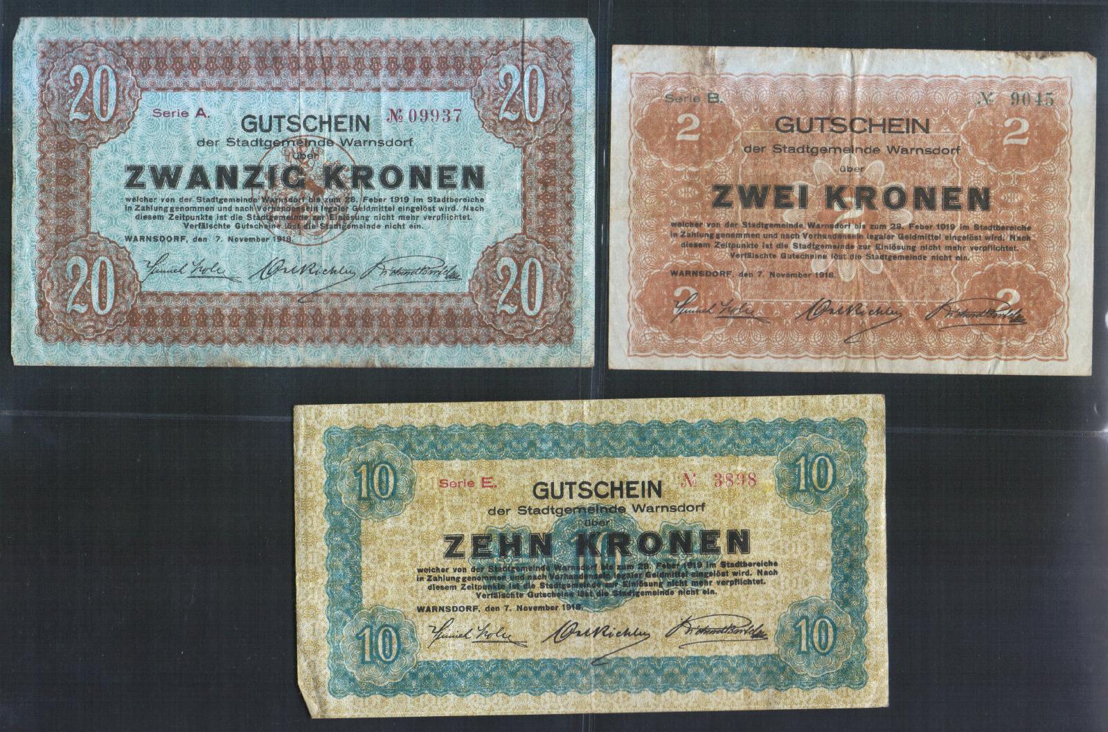 Warnsdorf (Varnsdorf) 2, 10 und 20 Kronen 1918