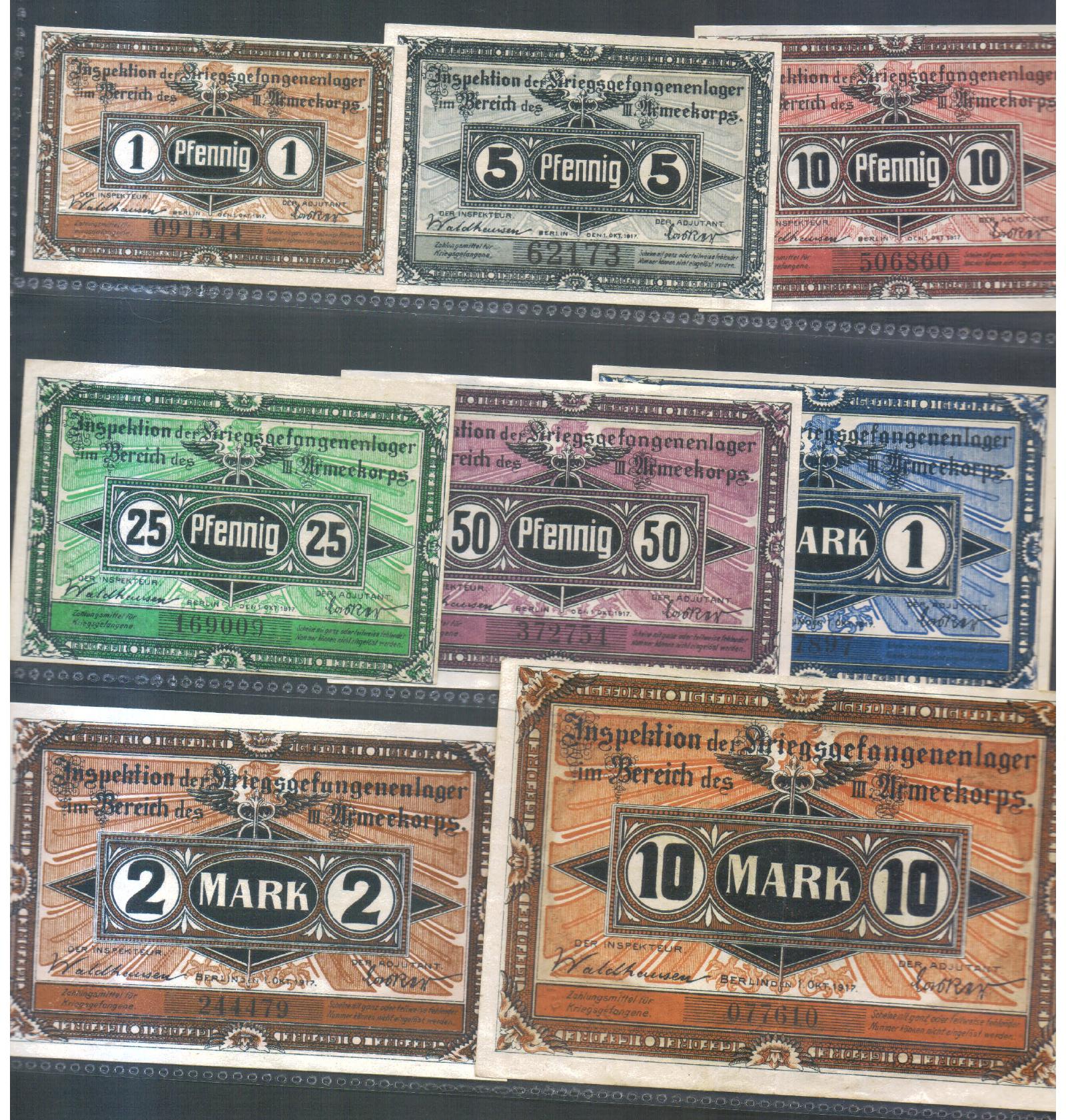Brandenburg Cottbus Gefangenen-Lager 1,5,10,25,50 Pf. 1,2,10 Mark 1917
