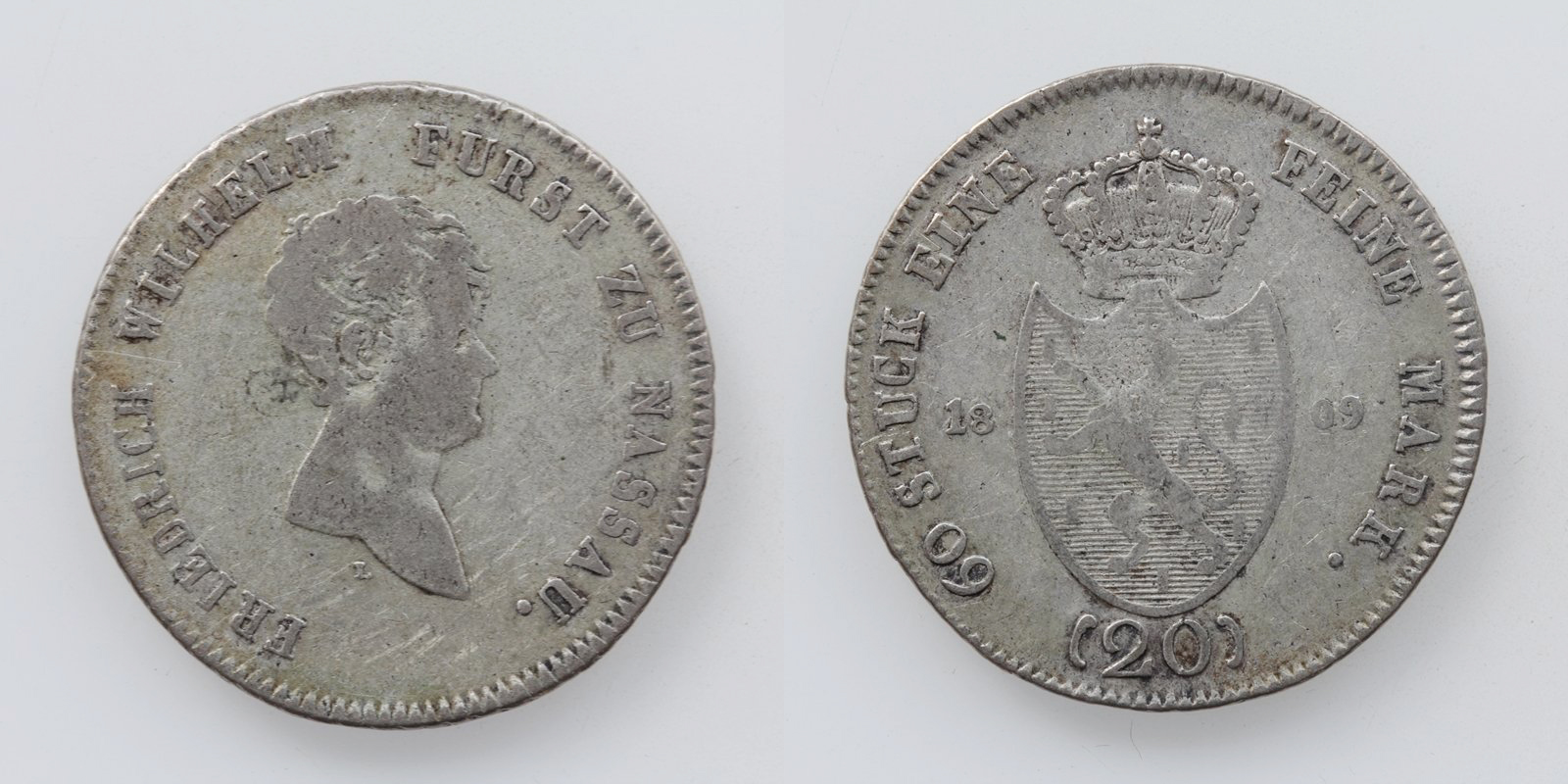 Nassau Friedrich Wilhelm 20 Kreuzer 1809 L RR!