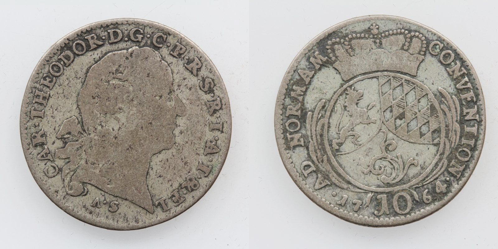 Pfalz Karl Theodor 10 Kreuzer 1764 AS Mannheim