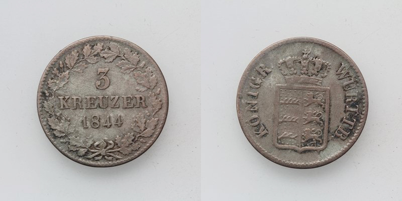 Württemberg Wilhelm I. 3 Kreuzer 1844