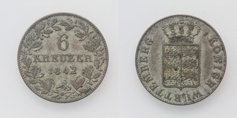 Württemberg Wilhelm I. 6 Kreuzer 1842