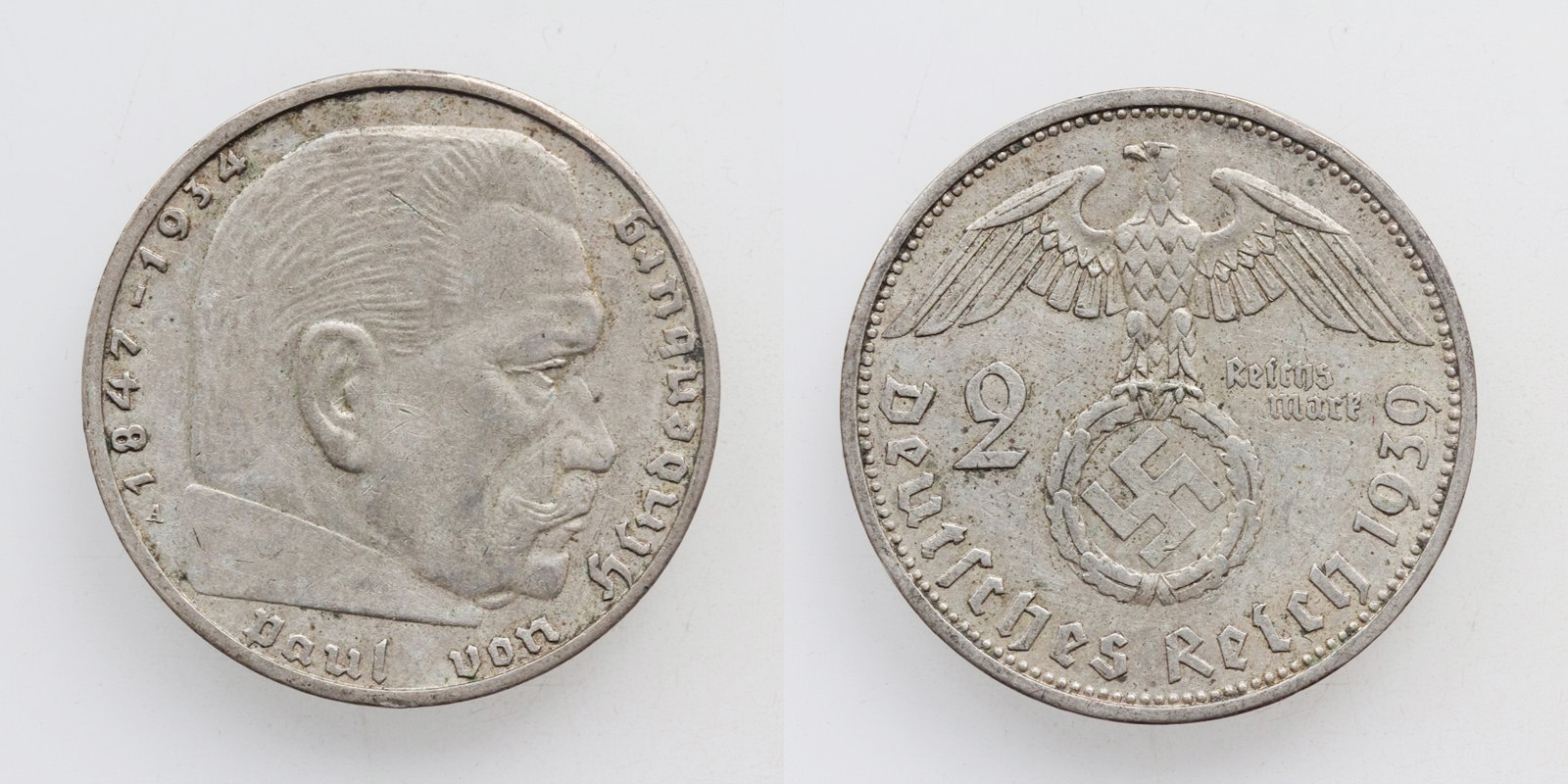 Deutsches Reich 2 Reichsmark 1939 A Hindenburg