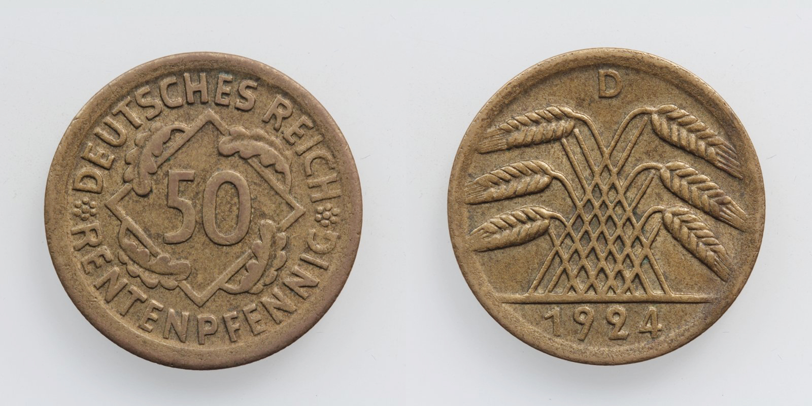 Weimarer Republik 50 Rentenpfennig 1924 D