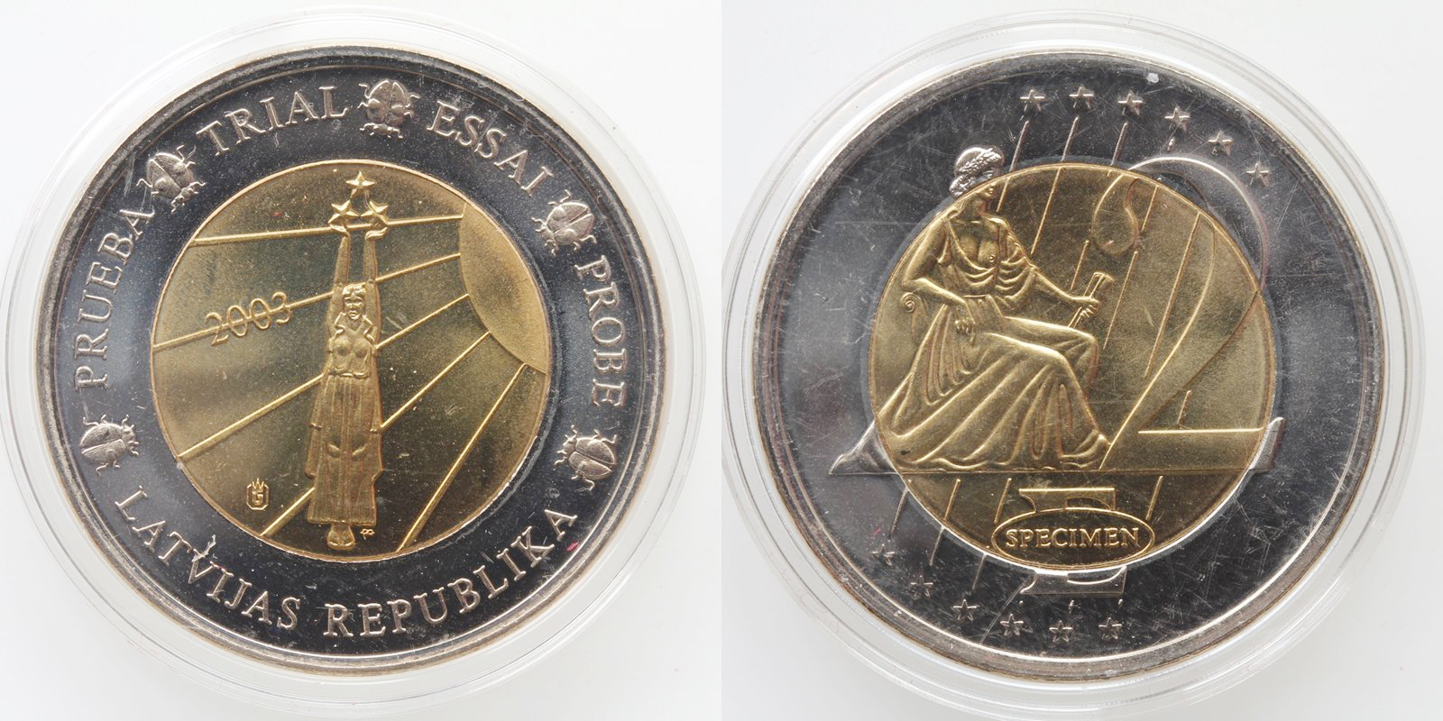 Lettland Euro PROBE-SPECIMEN 2 Euro 2003 PP Bimetall