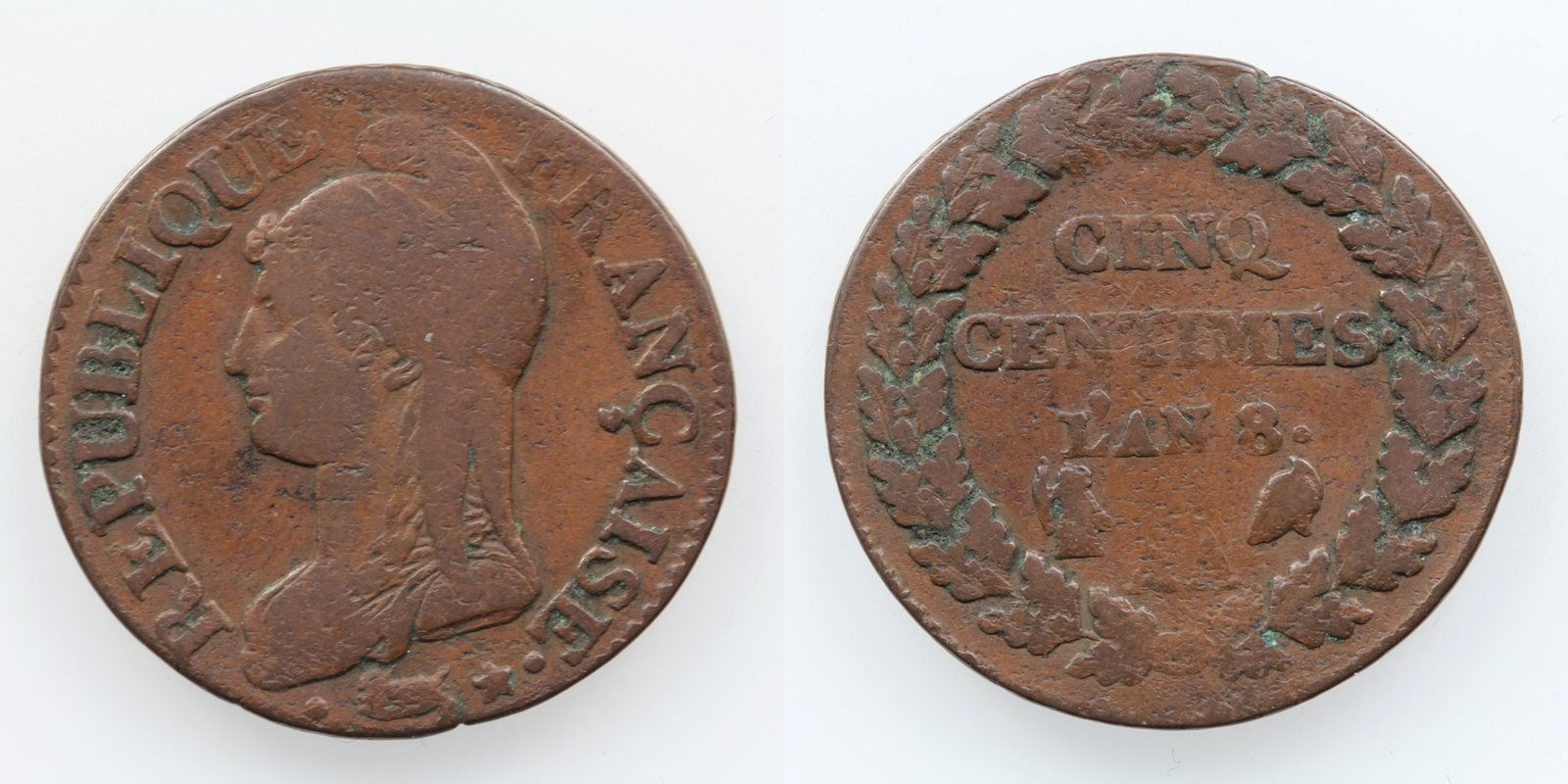 Frankreich Dupre Cinq Centimes AN 8 AA Metz o.J.