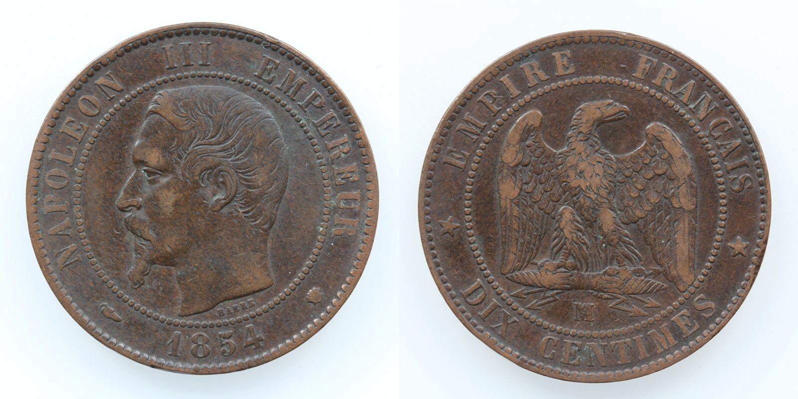 Frankreich Napoleon III. 10 Centimes 1854 MA Marseille