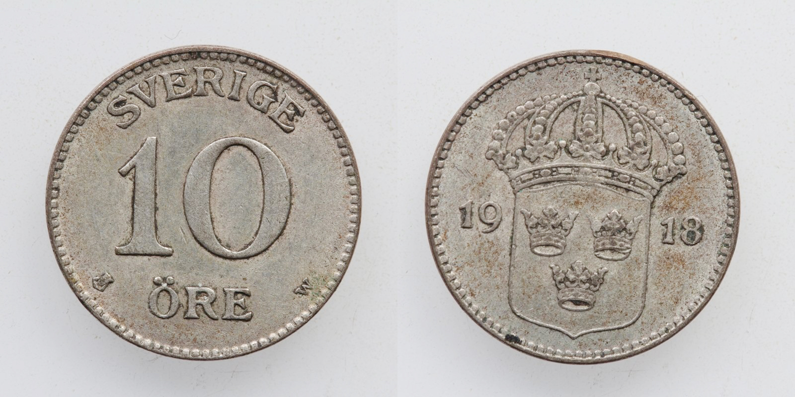 Schweden Gustaf V. 10 Öre 1918 Silber