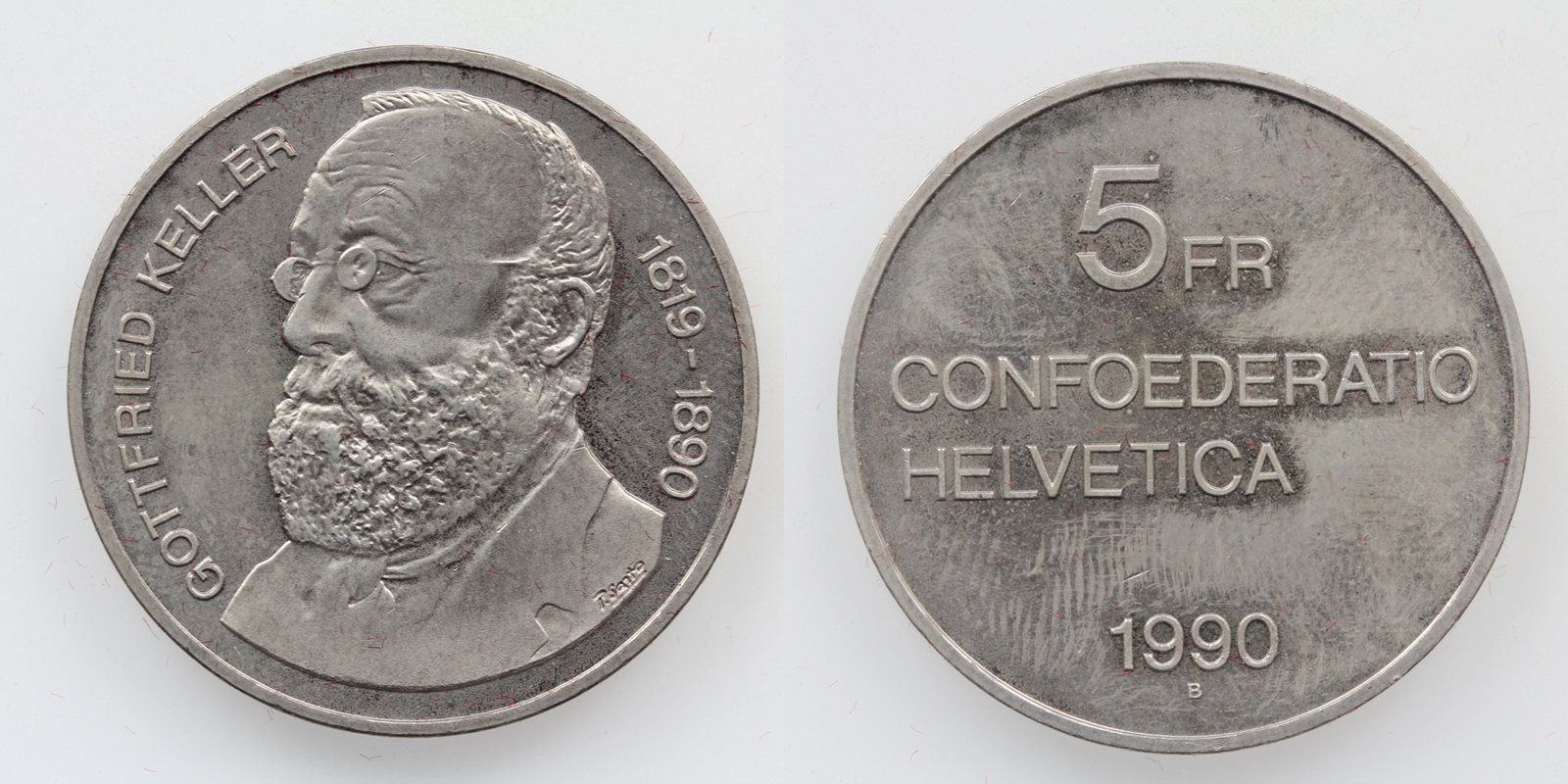 Schweiz 5 Franken 1990 B 100. Todestag von Gottfried Keller