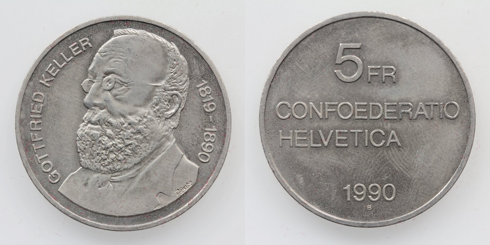 Schweiz 5 Franken 1990 B 100. Todestag von Gottfried Keller
