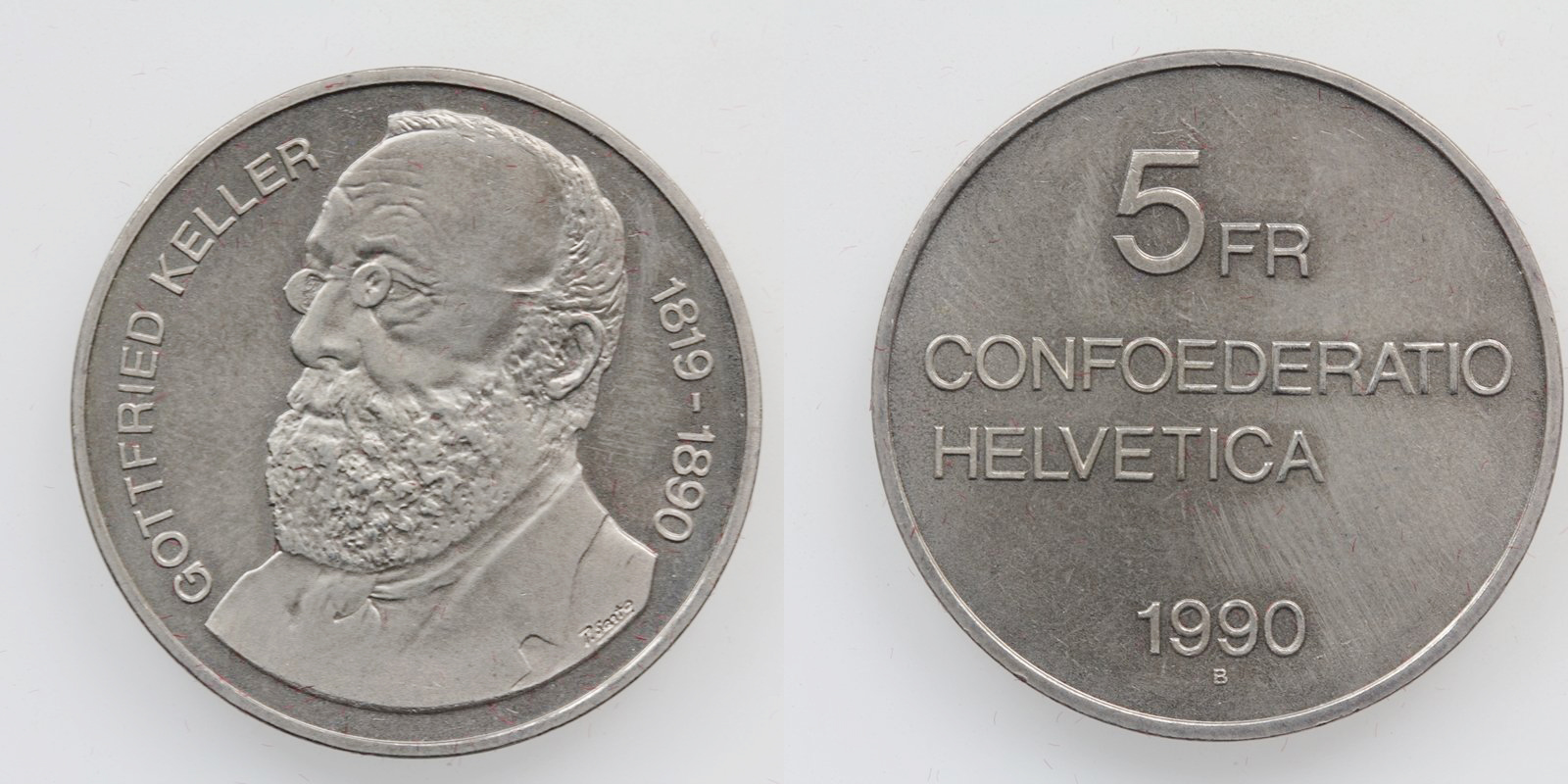 Schweiz 5 Franken 1990 B 100. Todestag von Gottfried Keller