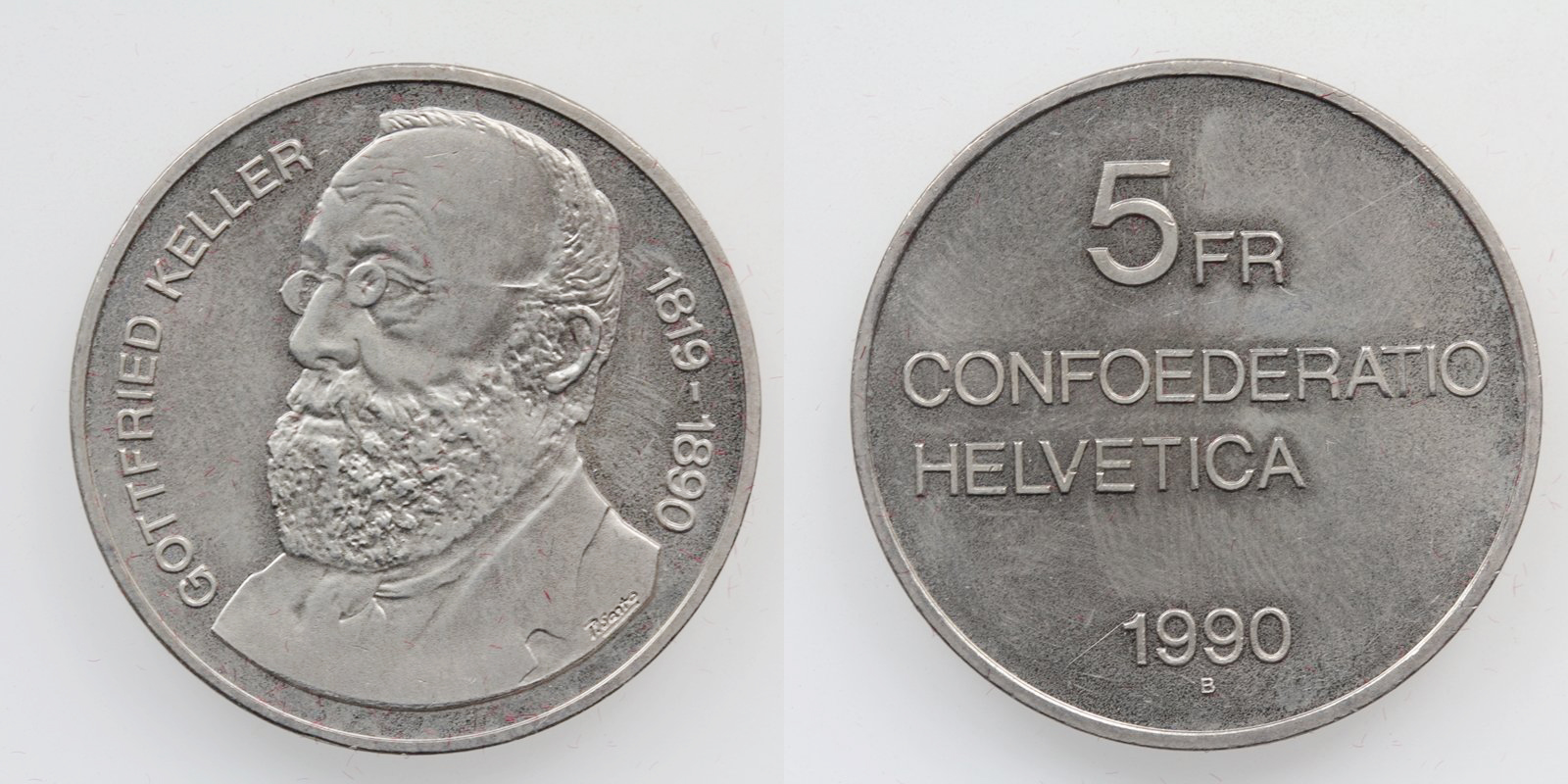 Schweiz 5 Franken 1990 B 100. Todestag von Gottfried Keller