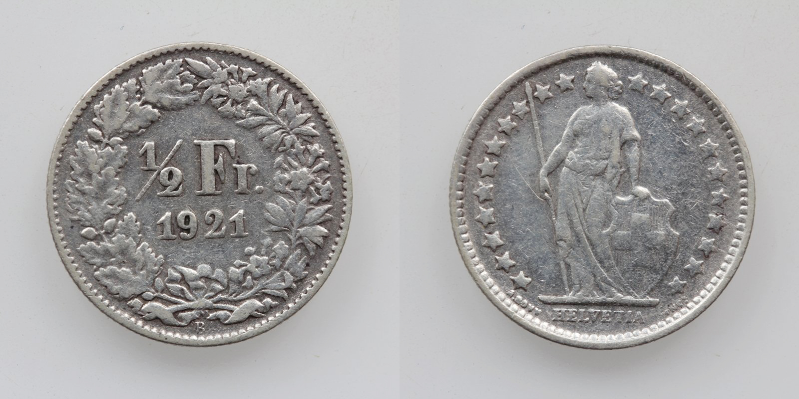Schweiz 50 Rappen 1/2 Franken 1921 B