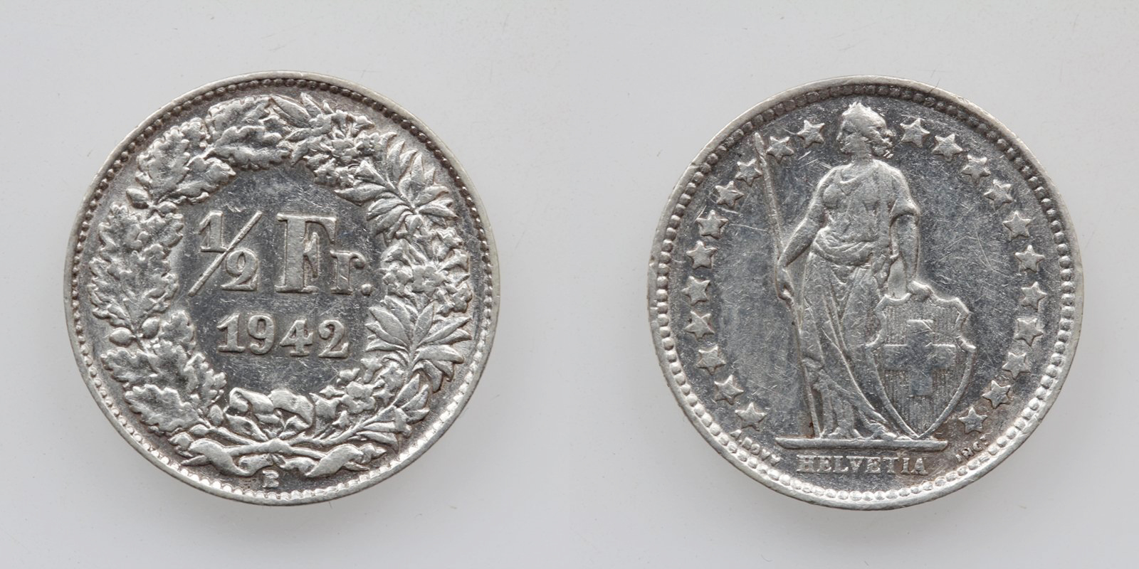 Schweiz 50 Rappen 1/2 Franken 1942 B