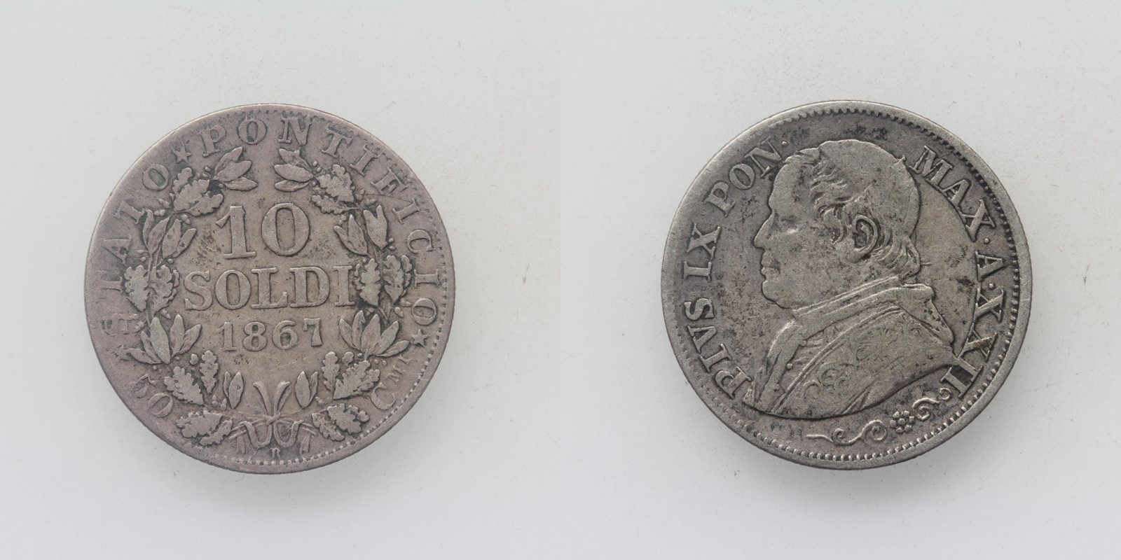 Vatikan Pius IX. 10 Soldi 1867 R