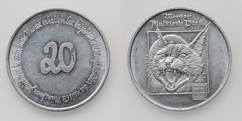 Alu-Jeton mit Wert 20 Münchner Ilustrierte Presse o.J.
