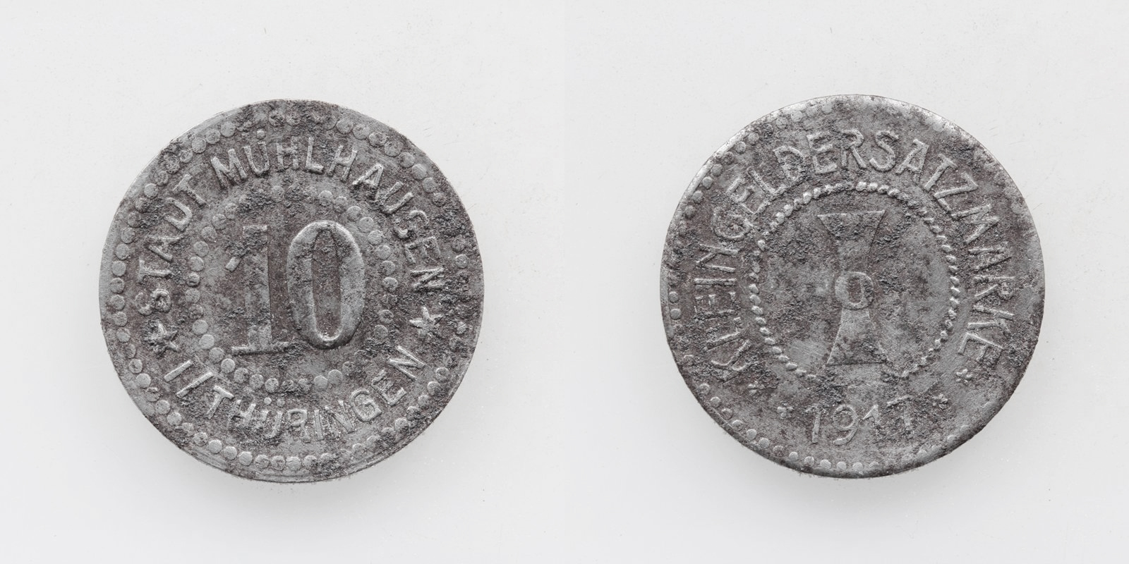 Kleingeldersatzmarke Stadt Mühlhausen 10 Pfennig 1917