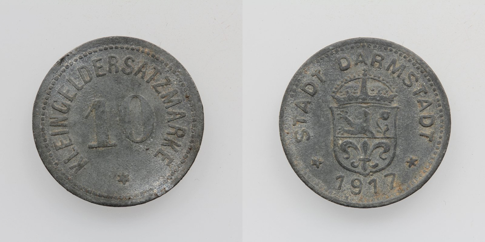 Stadt Darmstadt Kleingeldersatzmarke 10 Pfennig 1917