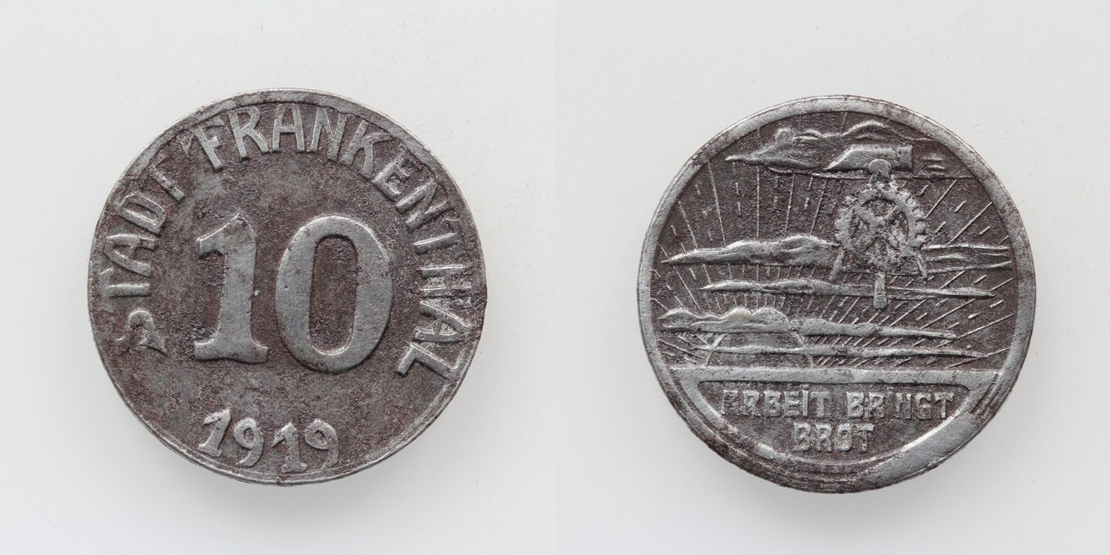 Stadt Frankenthal 10 Pfennig 1919 Arbeit bringt Brot