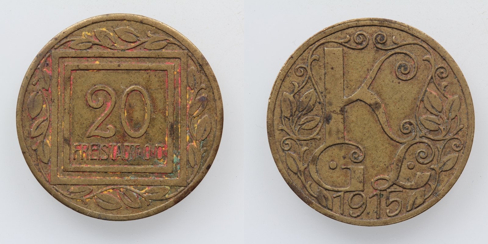 Kriegsgefangenen Lager Freistadt 20 Heller 1915 Messing