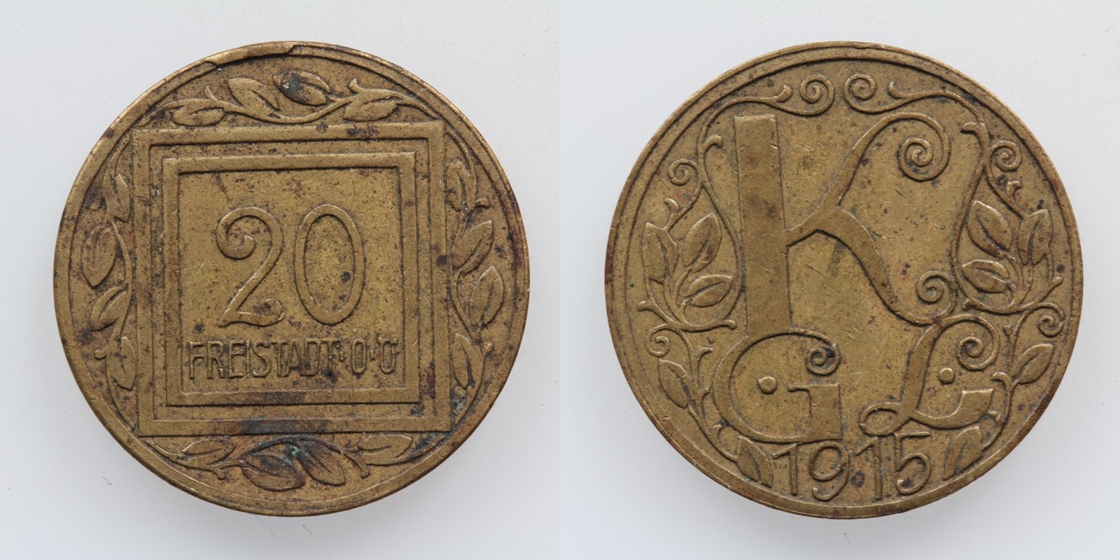 Kriegsgefangenen Lager Freistadt 20 Heller 1915 Messing