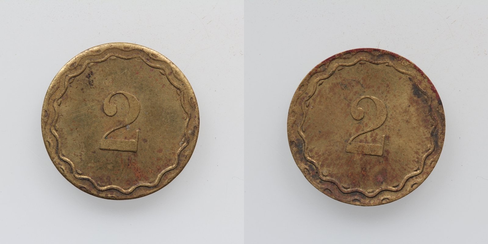 Messing Wertmarke Spiel Marke Zahl 2 o.J.