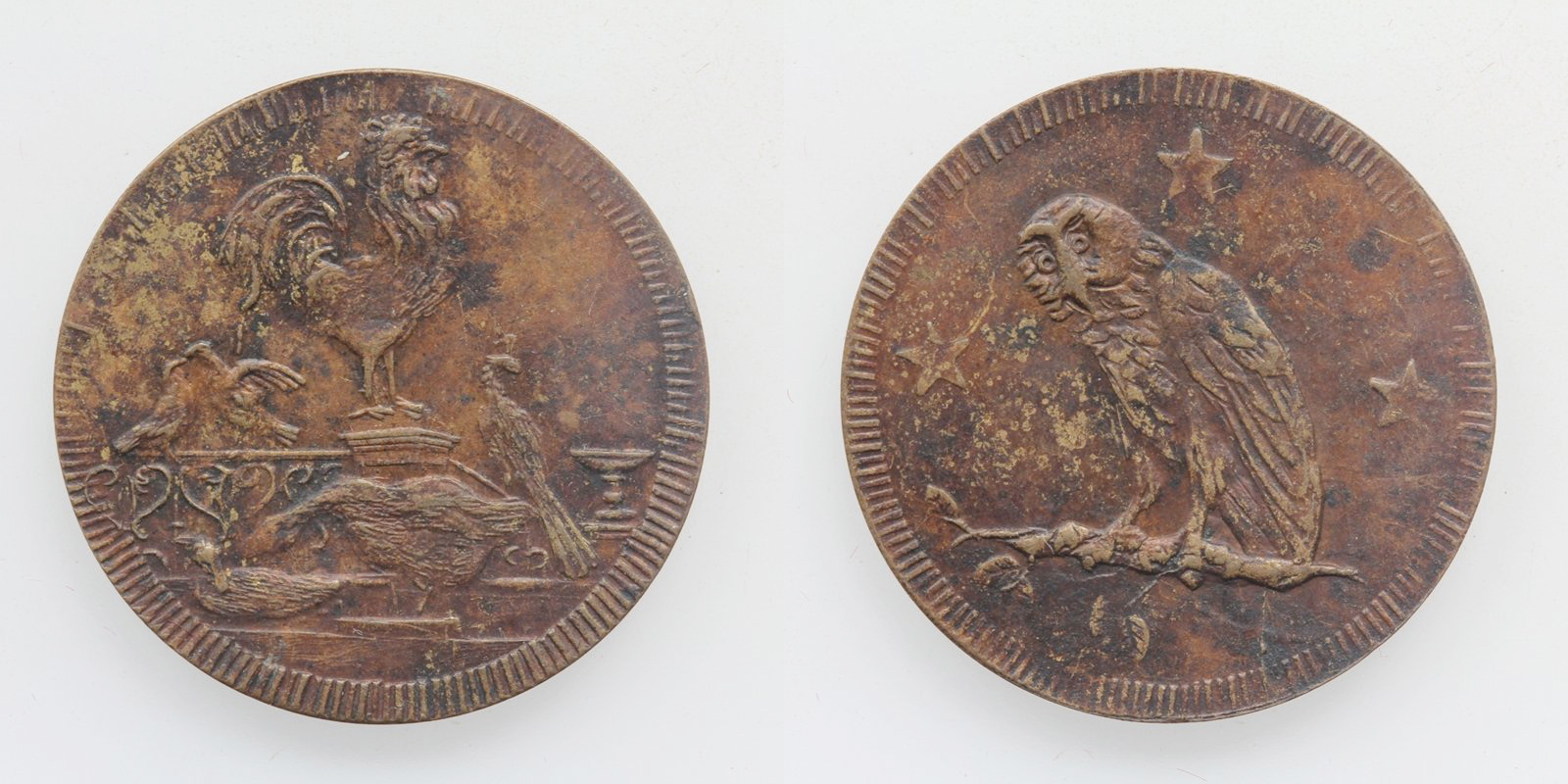 Spielgeld Messing Hahn und Eule o.J.