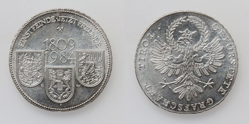 Tirol Silbermedaille 175 Jahre 1809-1984 Hall in Tirol