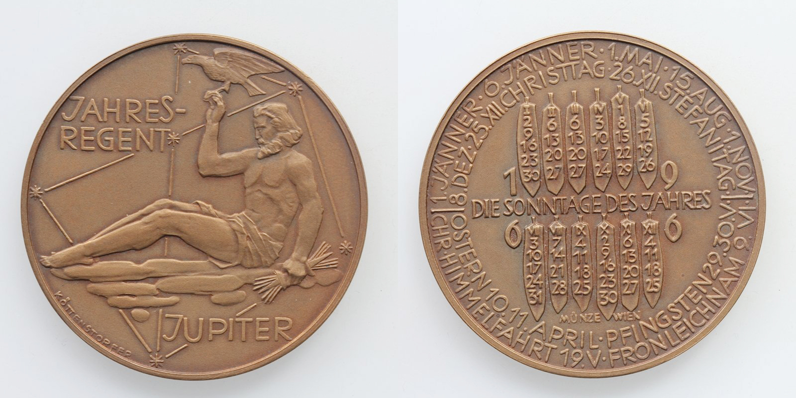 Österreich Kalendermedaille 1966 Bronze Jupiter