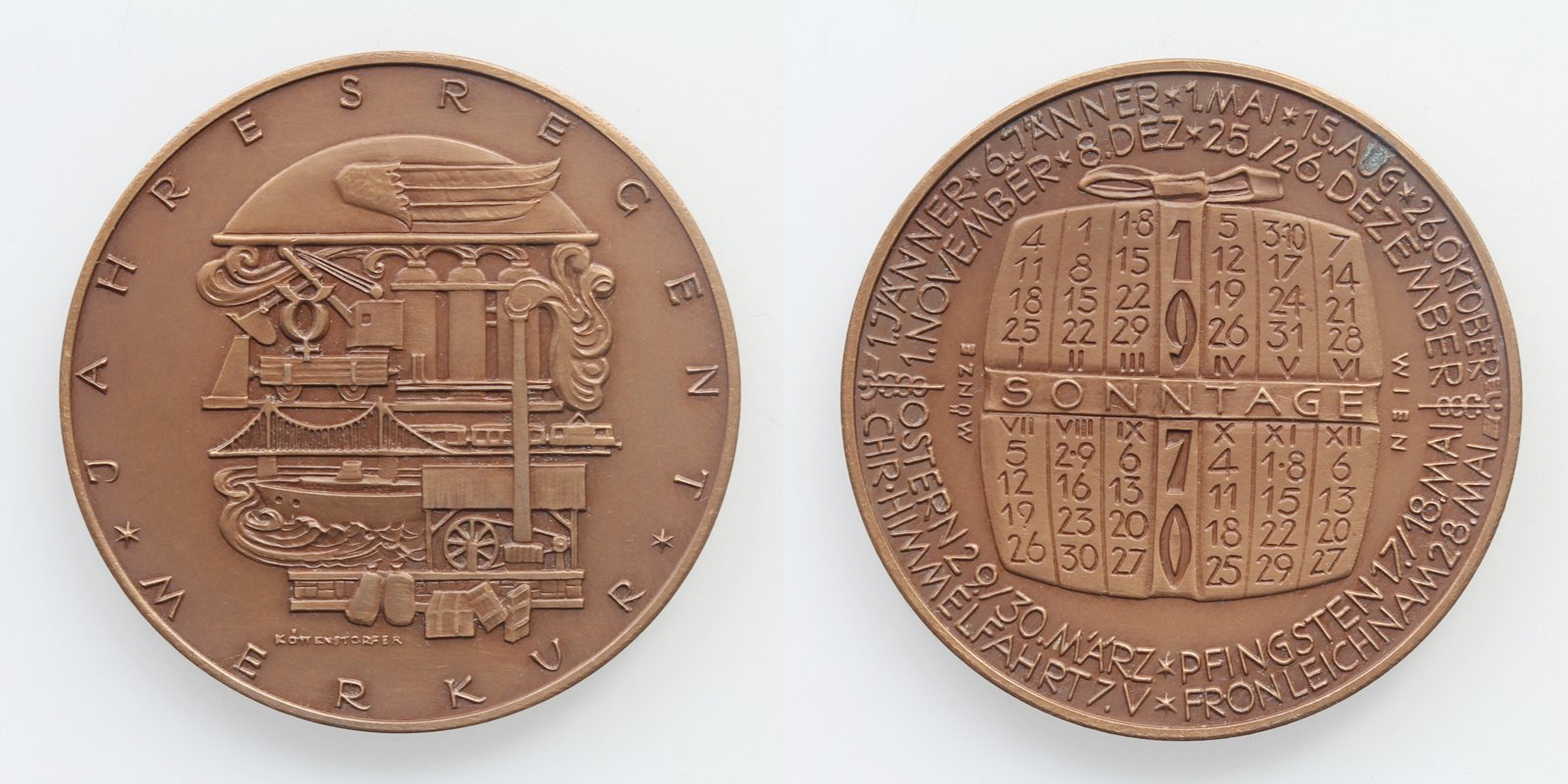 Österreich Kalendermedaille 1970 Bronze Merkur