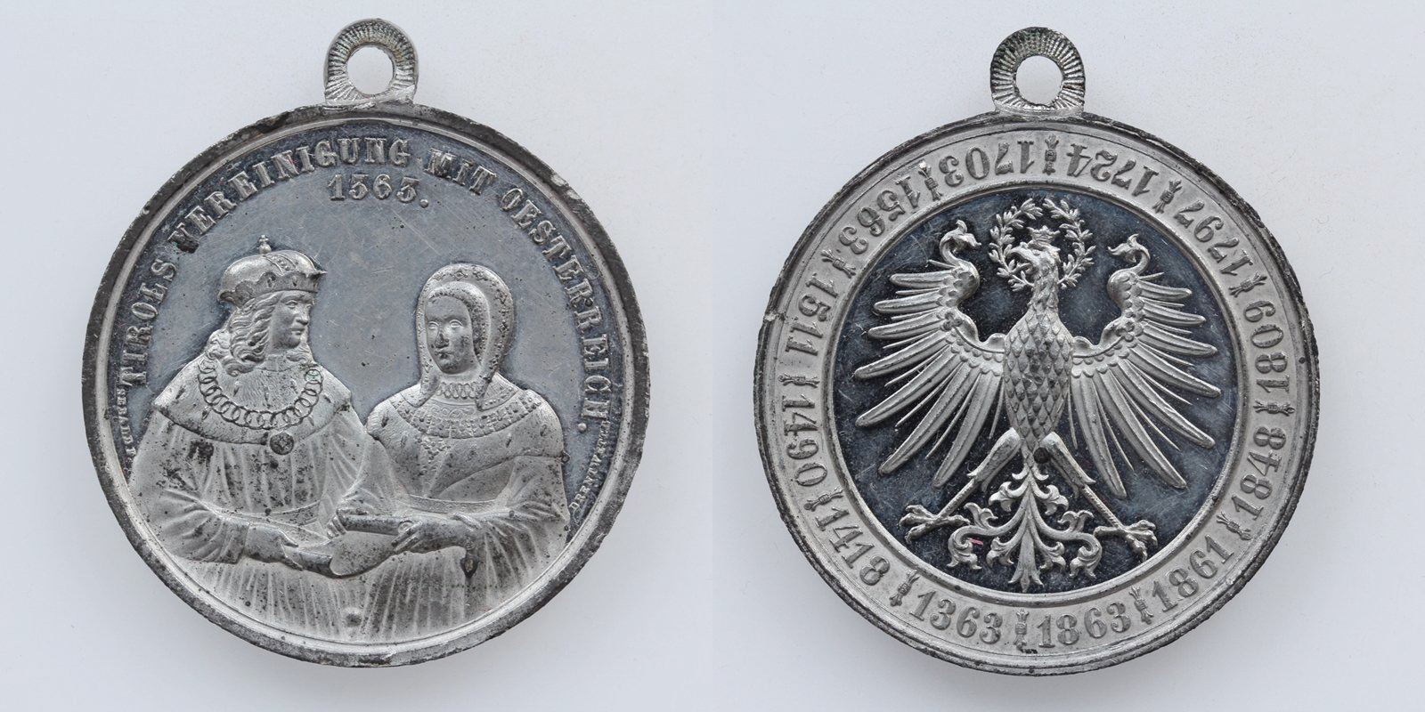 Tirol Zinn-Medaille 1863 500 Jahrfeier Tirol bei Habsburg