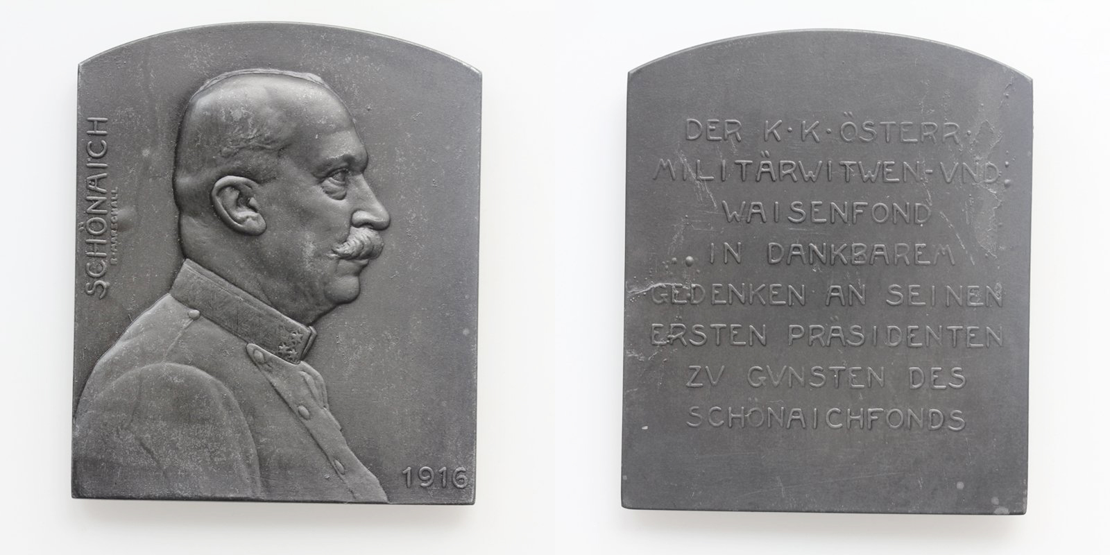 Zinkplakette 1916 v. R. Marschall a.d. Tod von Franz Xaver Freiherr v. Schönaich