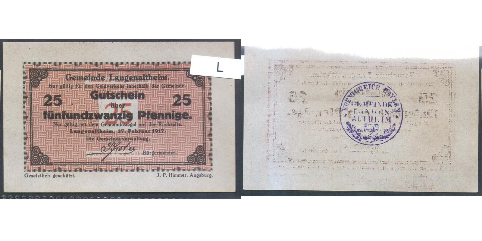 Bayern Gemeinde Langenaltheim 25 Pfennig 1917