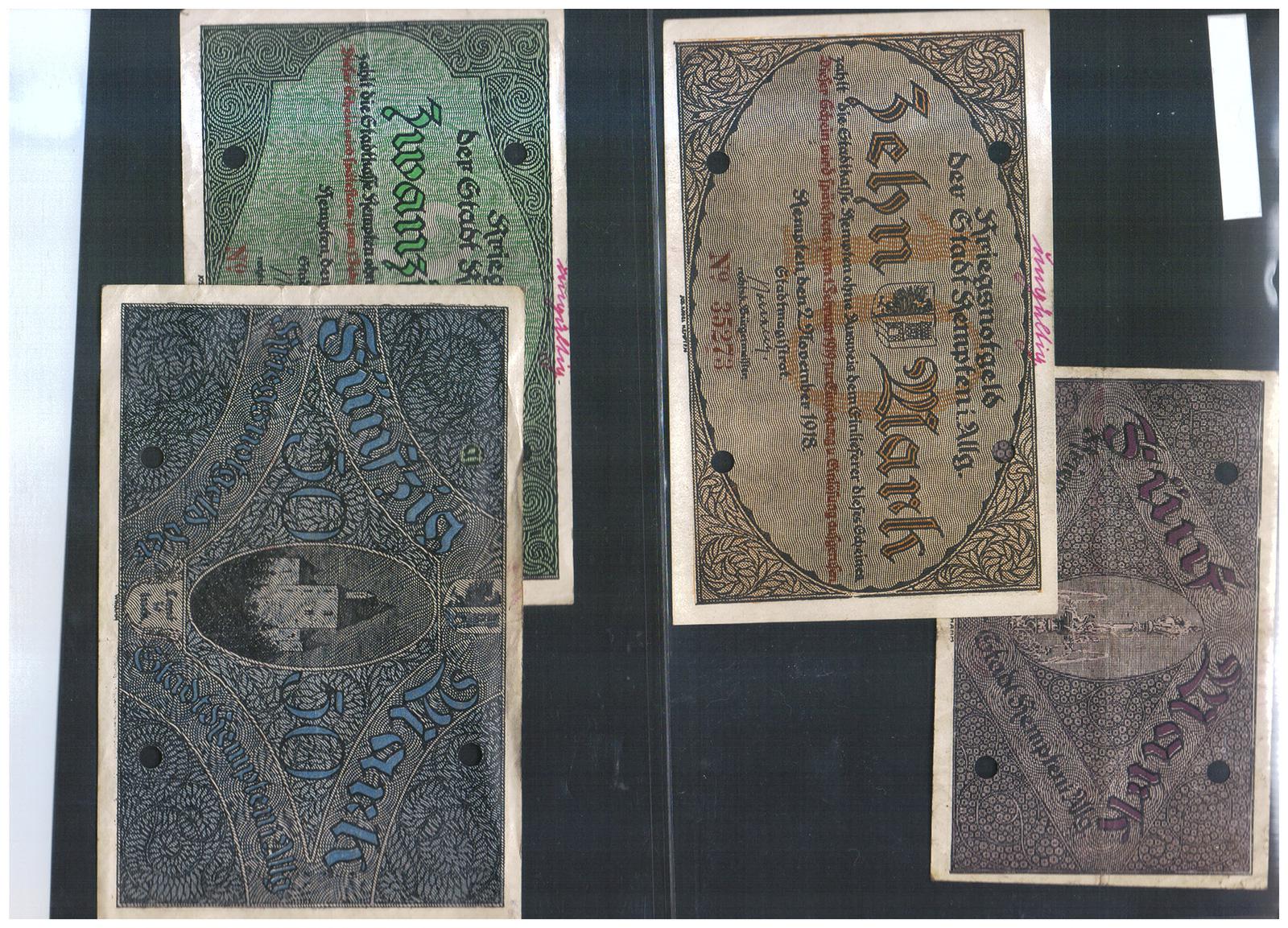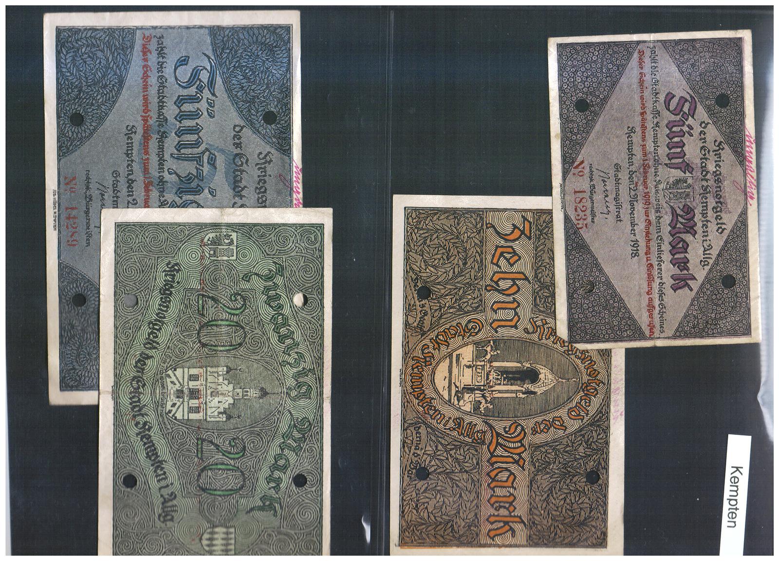 Bayern Kempten Kriegsnotgeld 5, 10, 20 und 50 Mark 1918