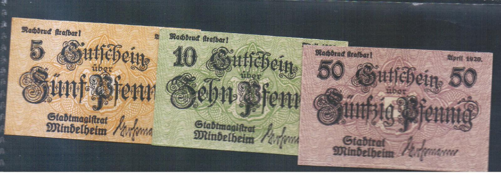 Bayern Mindelheim 5, 10 und 50 Pfennig 1920