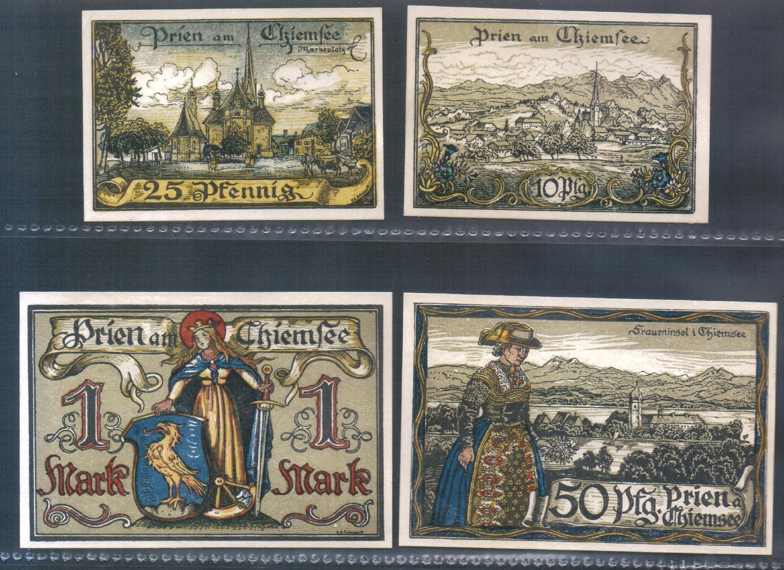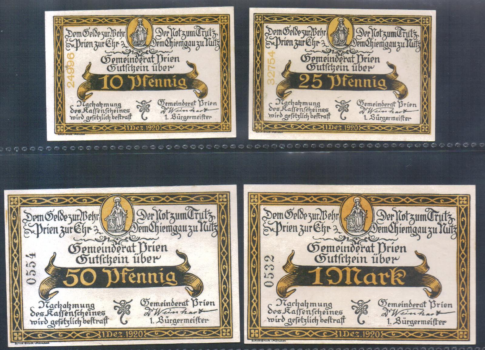 Bayern Prien 10,25,50 Pfennig und 1 Mark 1920