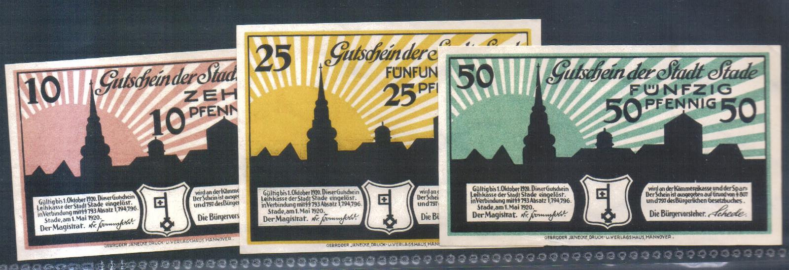 Niedersachsen Notgeld Stade 10, 25 und 50 Pfennig 1920