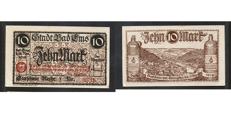 Rheinland-Pfalz Notgeld Bad Ems 10 Mark 1918