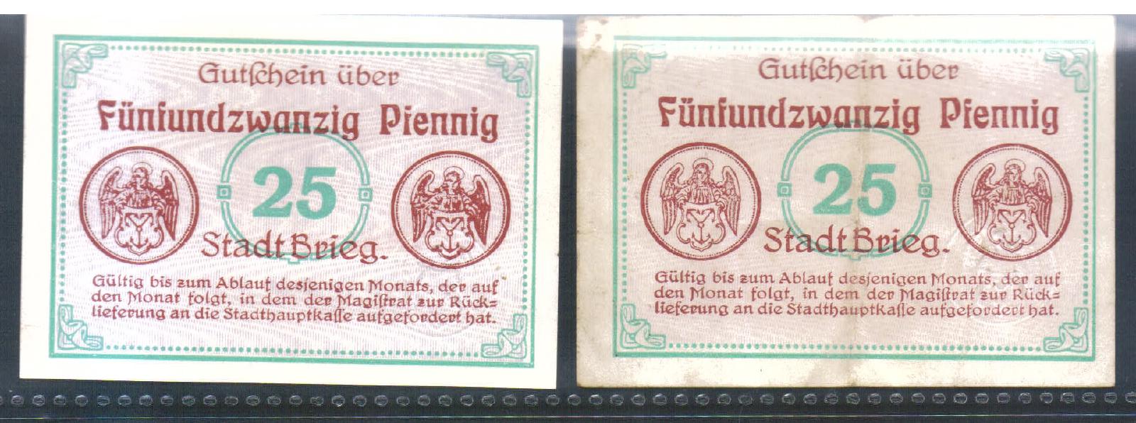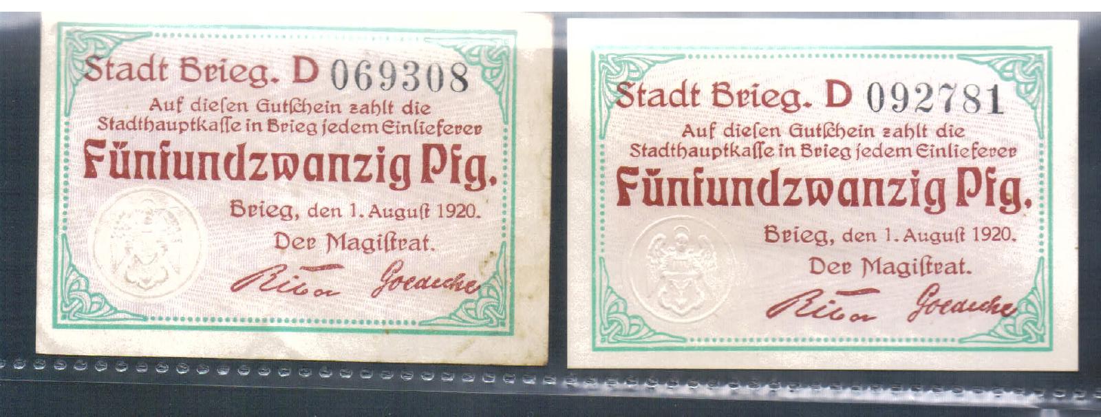 Schlesien Brieg 2 x 25 Pfennig 1920
