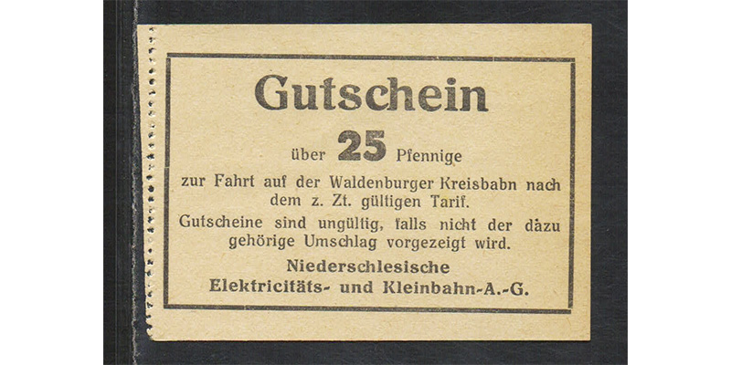 Schlesien Gutschein 25 Pfennig o.J. Waldenburger Kreisbahn