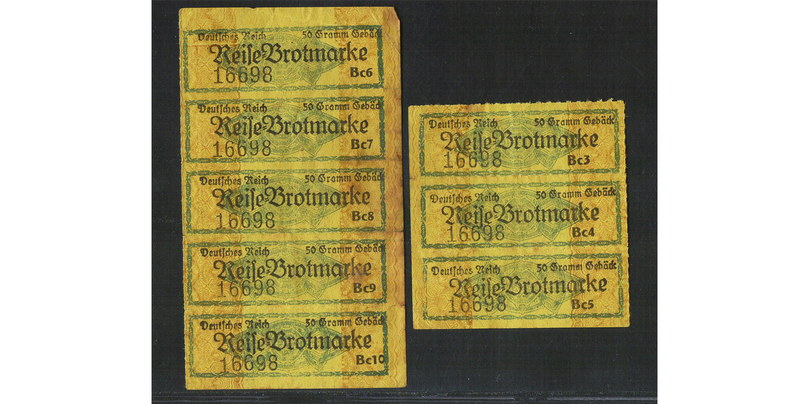 Deutsches Reich Reise-Brotmarke 50 Gramm Gebäck Bogen 8 Stück