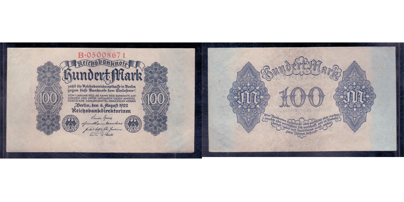 Reichsbanknote Berlin Hundert Mark 4.8.1922