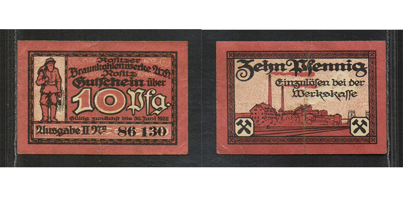 Thüringen Notgeld Rositzer Braunkohlewerk 1922