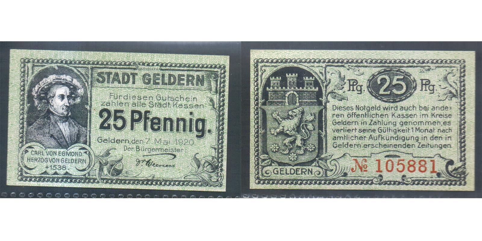 Nordrhein-Westfalen Notgeld Geldern 25 Pfennig 1920